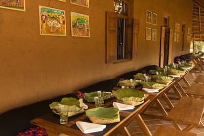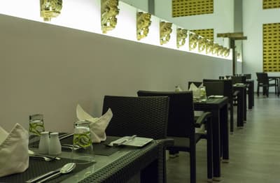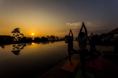 A droite, à gauche, devant : des champs, des rizières, des arbres ! C’est luxuriant, reposant. Et impressionnant, l’escalier qui mène au bâtiment principal. Pour un peu et vous cherchez le tapis rouge ! Retournez-vous... Juste pour admirer le panorama et, à vos pieds, la piscine. On ne l’a pas mesurée, mais même un éléphant pourrait s’y baigner ! Elle est tellement spectaculaire avec sa vue sur Sigiriya que tous les clients veulent en profiter. Et ce hall, plutôt inattendu, non ? Etonnamment vide... Deux murs avec des éléphants peints. XXL, les pachydermes. Ah oui, on a oublié de vous dire : Alya, en cinghalais, ça signifie éléphant. Et vous en trouverez un peu partout ici, en peintures, en sculptures, en photos ! Enfin, point trop n’en faut. Check-in, re-out, direction votre bungalow. Vous êtes de quelle école, chalet de bois chaleureux ou chambre à l’épure qui frise la maniaquerie ? On vous comprend si vous choisissez la chambre minimaliste, mais avec ce "plus" : une petite piscine privée, vraiment bienvenue après une balade à vélo ! C’est peu dire que le resort est immense, et plutôt éparpillé. Ça ne fait qu’ajouter à la tranquillité du spa... Une petite méditation, un cours de yoga, un bain de vapeur aux herbes ou ce soin holistique. Vous pouvez même en profiter à deux avant d’aller dîner ! D’accord, le buffet est classique, mais trois restos, ça vous donne le choix de tester la nourriture villageoise et la cuisine chinoise. A défaut d’être gastronomique, un bon point pour varier les saveurs !