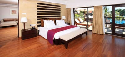 De son balcon aménagé de beaux fauteuils, elle profite d’une vue sur le lagon. Elle baigne dans une atmosphère sereine et reposante. Cette belle chambre accommode un grand lit ou des lits jumeaux. Salle de bain douche à effet de pluie.