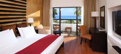 Superbe ! Cette belle chambre profite d’une vue merveilleuse sur l’océan. La terrasse est meublée de beaux fauteuils. Cette belle chambre accommode un grand lit ou des lits jumeaux. Salle de bain douche à effet de pluie.
