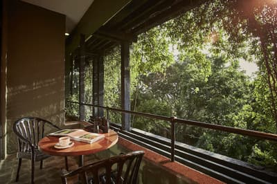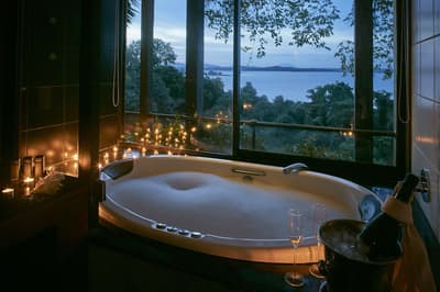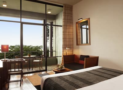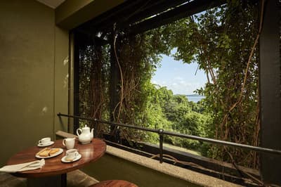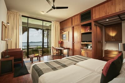 Le roi Kassapa, reclus sur son rocher de Sigiriya, aurait sans doute apprécié le voisinage de cet hôtel à la Indiana Jones, enfoui dans une jungle exubérante ! Toutes les plantes et tous les arbres du Sri Lanka semblent s'être donné rendez-vous sur les toits-terrasses coiffant ce bâtiment de sept étages. Un bâtiment signé Geoffrey Bawa, le célèbre architecte sri-lankais ! Et le green n'est pas qu'une attitude ici : pionnier du développement durable, cet hôtel de 152 chambres est remarquable par ses vues époustouflantes sur le lac Kandalama et le rocher de Sigiriya, mais aussi par son approche en matière d'éthique et d'écologie. Vous pourrez faire le tour de toutes ses initiatives lors d'une visite guidée de son eco-park, où une fabrique de papier à partir de bouse d'éléphant a été installée ! Attendez aussi de voir les belles piscines, dont une infinity pool avec vues sur le lac et une piscine orientée plein ouest pour les bains au coucher du soleil... Sans oublier le spa avec soins ayurvédiques, et les dîners surprise dans une grotte ou en compagnie du chef ! De quoi vous donner envie de rester vous prélasser dans votre cocon de verdure tropicale. Mais pas trop quand même, car la région est une pépite pour les excursions culturelles ! Le rocher de Sigiriya tout proche, bien sûr - l'ancienne capitale du Sri Lanka aux 1300 marches et aux superbes fresques. Mais aussi le temple de Dambulla, voisin, ou les villes d'Anuradhapura ou Pollonaruwa, dans un rayon de moins de 2 heures de route. Et côté nature et jolies balades, le compte y est : en bateau pour observer les oiseaux le matin, à VTT, à pied, ou même en montgolfière pour mixer nature, culture et sensations fortes!