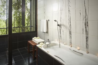 Superbe ! Cette belle chambre a tout ce qu’il faut pour un séjour des plus agréables. Le balcon est meublé de belles chaises pour apprécier la belle vue. Elle accommode un grand lit ou des lits simples et dispose d’un bureau dans un coin de la pièce. Salle de bain avec baignoire et douche à effet de pluie.
