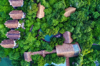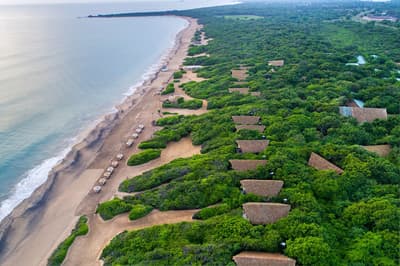 Des châlets dans la jungle au bord de la mer avec prestations et service de luxe.