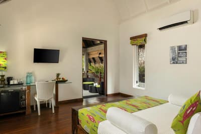 En un mot comme en mille : wow. Le site exceptionnel de cet hôtel vous offre une vue à couper le souffle. Vous avez déjà sûrement vu une piscine donner sur l'océan. Mais pas comme ça. L'endroit nous donne juste envie d'enlever ses chaussures pour ne les remettre que le jour du départ. Le site est exceptionnel, avec cette immense plage d'une beauté brute, cette piscine spectaculaire qui vous promet des photos à mille likes. Les bungalows de luxe accueillent couples et familles pour une halte aux allures de carte postale. On pose les valises, on enfile un maillot, un coup de crème solaire et c'est parti pour un séjour reposant, gourmand, qui restera à coup sûr gravé dans votre mémoire. Less is more, on n'a pas besoin de mille animations pour passer des vacances exceptionnelles au Maalu Maalu. On profite de la plage, de la piscine, on va plonger si l'on veut. Le spa les pieds dans le sable propose des soins et traitements qui vont vous requinquer en moins de deux. L'hôtel est à l'écart de l'animation, on y passe des vacances zen et on repart boosté comme jamais !