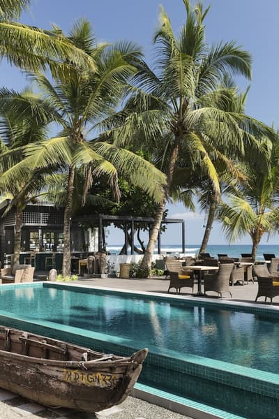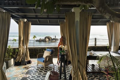 The Owl and the Pussycat hotel, OTP, à Galle est un endroit magique, une ode à la poésie. C’est la petite chanson qui a bercé notre enfance, une petite madeleine de Proust. Sur les murs colorés de l’hôtel, les vers du poète du non-sens Edward Lear vous content une histoire avec en toile de fond, le bleu azur de l’océan indien. Conçu par l’architecte new yorkais Uday Khar, l’ensemble est un joyeux bazar de meubles, d’œuvres d’art et tissus que l’on doit à la collaboration de 20 artistes du monde entier. Entrez dans la drawing room et admirez cette ambiance éclectique : les canapés sont roses, beiges ou bleus, les murs recouverts de livres du monde entier, les objets totalement anachroniques, l’ensemble est surréaliste ! « They danced by the light of the moon ». En début de soirée, la terrasse, entre océan et piscine vous invite à danser sous les étoiles. Mention spéciale le week end quand un petit orchestre de jazz vient animer la soirée, mémorable ! Autre ambiance, plus peacefull, le Welness Beach Shack, le petit spa de l’hôtel, une belle cabane en plein air où vous vous ferez massés au son des vagues de l’océan… Divin ! Chaque recoin de l’hôtel est une nouvelle découverte toute en élégance, en délicatesse et toujours ce sourire d’enfant qui renait sur votre visage et qui décidemment vous va très bien.