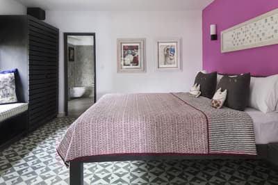 Chaleureuse et joyeuse, elle arbore un beau carrelage, un mobilier moderne et se complète dans des accessoires éclectiques. La chambre est dotée d’un lit Lit king size (convertible en lits jumeaux) avec salle de bains attenante spacieuse. Le tout dans une atmosphère conviviale !