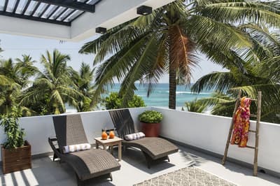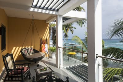 Elle offre une vue exceptionnelle sur l'océan et peut être située au premier et deuxième étages. Elle dispose d’une grande terrasse avec des fauteuils et des lits de jour suspendus offrant une vue magnifique sur l'océan.