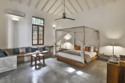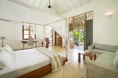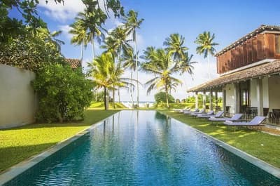 Quoi, vous n'avez jamais pris votre bain en plein air en vous enivrant des parfums suaves du frangipanier ? C'est le moment ou jamais ! Ce bel arbre aux fleurs blanches et odorantes est le totem de ce boutique-hôtel chic et charme posé au bord de l'océan, à 15 minutes de Galle, ancien comptoir colonial au sud-ouest du Sri Lanka. Une adresse au calme pour explorer la jolie ville fortifiée et profiter en toute tranquillité des plages taillées pour le farniente ou le surf. Intimiste, The Frangipani Tree by Edward Collection ne compte que neuf chambres, élégantes et confortables, réparties dans trois bâtiments à l'architecture épurée d'inspiration coloniale. Pas de resto ni de parties communes, à part un salon TV/bibliothèque : l'atmosphère est informelle et le service personnalisé, avec possibilité de massages et repas en chambre. Mais que les fans d'animation se rassurent : l'adresse est à 5 minutes de voiture et 10 minutes à pied de la plage de Vijaya. Un joli spot pour pratiquer le snorkeling, grignoter des plats simples dans les petits restos, ou même assister à une beach party !