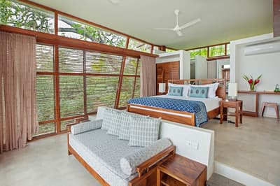 Nichée sur le lac Koggala, elle profite d’une grande terrasse aménagée d’où vous pourrez vous détendre et contempler la vue imprenable sur le paysage naturel Elle comprend un salon spacieux avec un lit de repos qui peut être utilisé comme un lit simple.