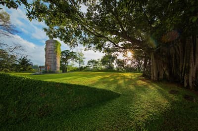 Idéale pour un séjour en amoureux, ce château d’eau est situé au sommet d’une colline recouverte de bois de cannelle et offre une vue imprenable sur l’est et l’ouest que vous pourrez contempler en toute intimité.
