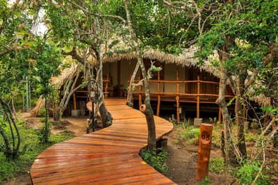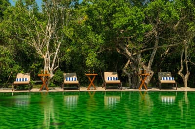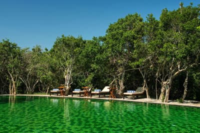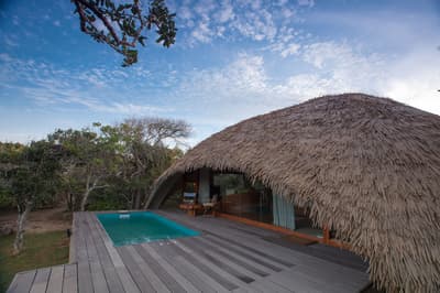 3 hectares de jungle en bordure d’océan. 14 huttes avec piscine privée et 2 safaris par jour : du all inclusive, oui, mais de haut vol !