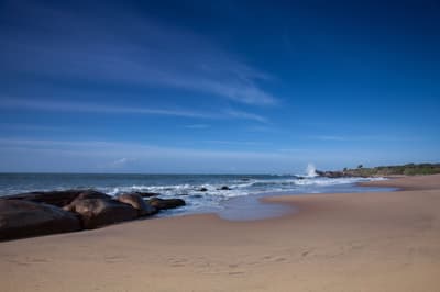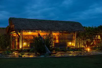 Du vert. De part et d’autre de la route, des arbres touffus, annonciateurs de cette jungle posée au bord de l’océan, imbriqué dans les dunes... Une clôture grillagée. Vous pouvez passer. Autant vous le dire tout de suite : oui, il y a une plage, oui, l’océan vous nargue, mais les courants sont si forts que mieux vaut ne pas s’y aventurer... Ça tombe bien, ce n’est pas pour son farniente balnéaire qu’on choisit l’Uga Chena Huts. On vous voit faire la moue. Des huttes, vous allez dormir dans une hutte ? Attendez de voir la vôtre !! Votre refuge : un immense dôme recouvert d’une chevelure de chaume au bout d’une passerelle en bois. Ouvrez la porte pour découvrir les 100 m2 de votre home sweet home. Regardez la déco rustique chic ! Un mur de baies vitrées et là, cette terrasse incrustée d’une piscine. VOTRE piscine. Les voisins ? Impossible de les voir, dispersés qu’ils sont sur près de 3 hectares. Allez au dodo, demain on se lève tôt. 5 heures du mat' ! Les yeux papillonnant de sommeil, grimpez dans la jeep. Six personnes à bord, et votre ranger. Lui, il a déjà le regard bien affûté. Un quart d’heure à peine et voilà déjà des lézards à gogo, des singes en pagaille, et ce paon endéméique. Sans compter ce serpent volant et une laie avec ses enfants. Un peu de patience, dans le silence. Non, vous ne rêvez pas : deux léopards en même temps ! Le parc national de Yala condense la plus forte densité de ce félin au monde... Vous en voulez encore ? Un second game drive est prévu dans l’après-midi. Et là, cherry on the cake, c’est peut-être un ours lippu que vous immortaliserez. Aux anges mais couverts de poussière, un massage au spa sera plus que bienvenu. Le chant de l’océan, la lumière du phare, la terrasse du bar : quel endroit apaisant ! Ce soir, dîner en amoureux sur la plage. Un curry délicieux, un poisson juste grillé. Et là, sous vos yeux, c’est encore un éléphant qui passe nonchalamment !