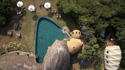 Pouvant accueillir une petite famille, elle offre une vue panoramique sur la jungle depuis les façades à double vitrage à double hauteur. Vous pourrez nager de jour comme de nuit dans le bassin profond privé à l’état sauvage et vous relaxer dans les deux transats sur le pont, tout en prenant des bains de soleil.