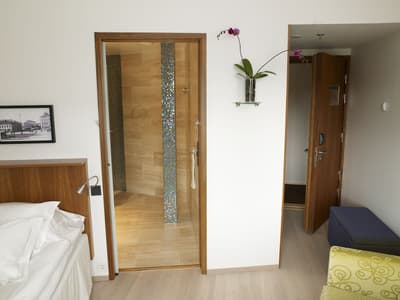 Idéale pour les voyageurs solos, elle est confortable et agréable. Elle accommode un lit simple et dispose d’un fauteuil dans un coin de la pièce. Salle de bain chic.