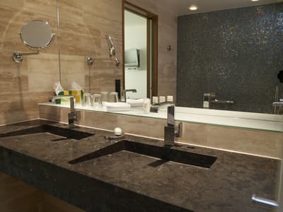 Le top ! Agréable et confortable, elle a tout le nécessaire pour un séjour super. La grande fenêtre profite d’une belle vue et l’atmosphère est sereine et reposante. Elle accommode un grand lit et une baignoire dans un coin de la pièce. Salle de bain avec douche à effet de pluie.