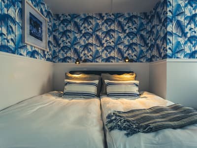 Benvenuti à Bellora, petite enclave italienne perdue dans le sud de la Suède ! Réparties sur sept étages, les 98 chambres du Bellora partagent un amour certain pour l'Italie des années 60. En témoignent de beaux clichés en noir et blanc de scènes de vacances à la romaine : dîners al fresco, balades en Vespa et tutti quanti. Après avoir passé la réception et son authentique comptoir en bois, préparez-vous à entrer dans une scène de The Shining version fleurie ! Le couloir menant à votre chambre offre une belle perspective, tapissée de grosses fleurs roses sortant tout droit d'un herbier du XIXe siècle. Mais attention, dormir n'est clairement pas l'activité principale au Bellora. Ce qui explique sûrement le peu de place laissé aux chambres ! Vous êtes dans un hôtel qui pulse et qui propose de nombreux lieux de rencontres : bar, club, resto... Vous vous demandez si c'est-ce bien insonorisé ? Oui, rassurez-vous ! Et le design d'intérieur a été réalisé par les studios Spik, basés à Göteborg : des visionnaires, des philosophes, des rêveurs... Leur objectif : créer des expériences désirées et désirables, et des histoires que les gens ont hâte de partager. Et ici, c'est réussi !