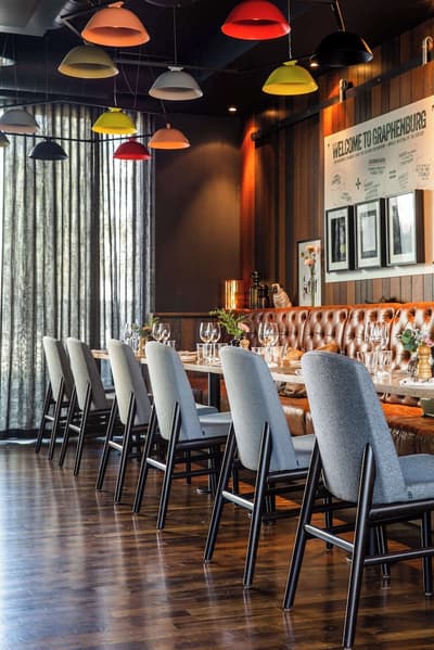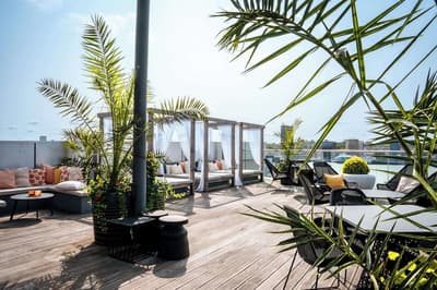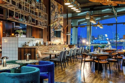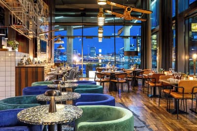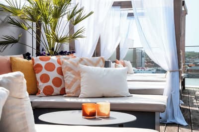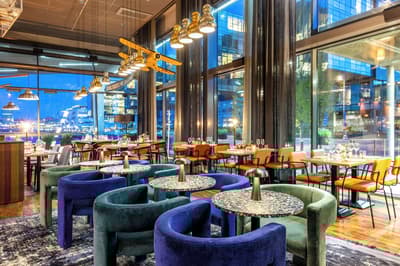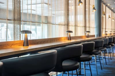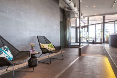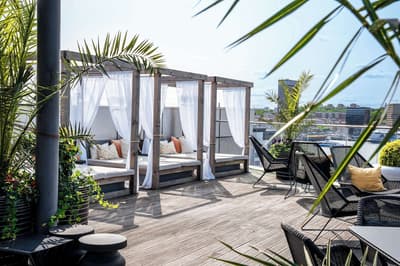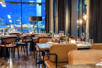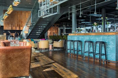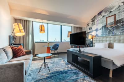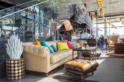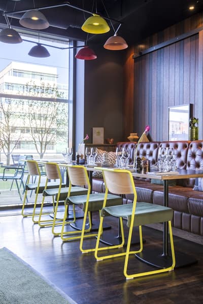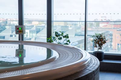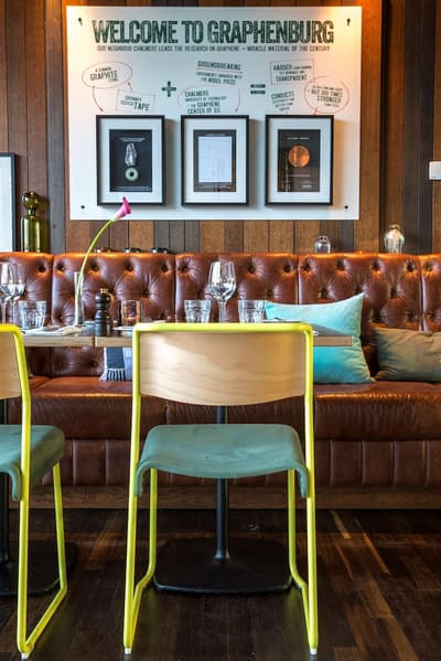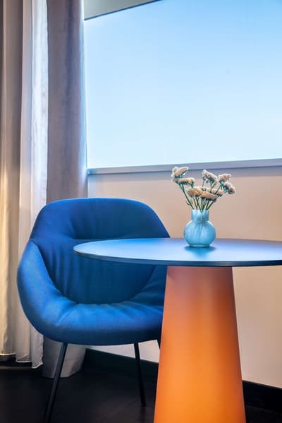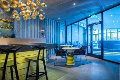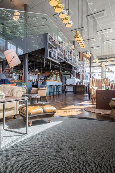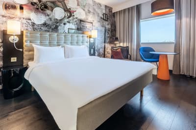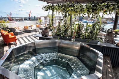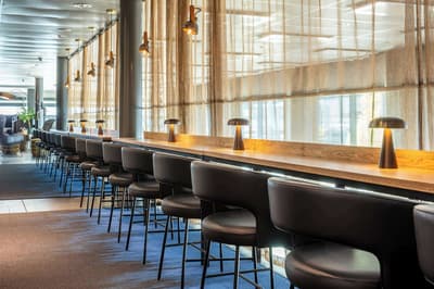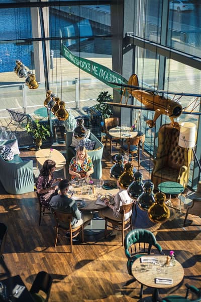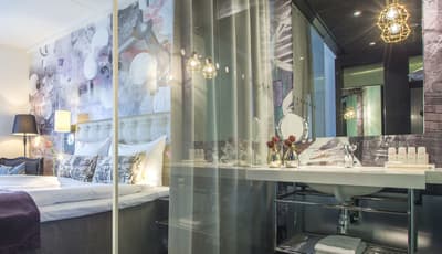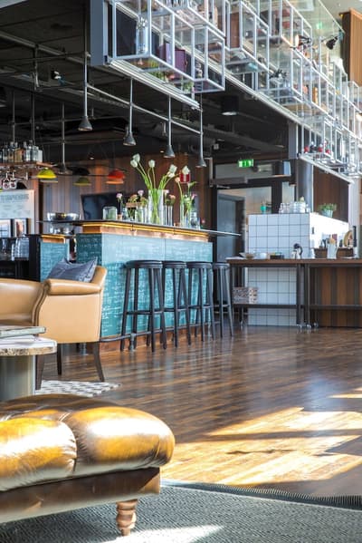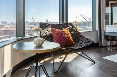 Tel un mirage, la façade du Radisson Blu Riverside émerge ou se fond dans le paysage selon le point de vue. En tout cas, son design a suscité bien des réactions, dès sa construction dans le quartier portuaire de Lindholmen en 2013 ! Sa déco intérieure, industrielle chic, se distingue par une multitude de clins d'œil au parc scientifique juste à côté : un vase en forme de petit astronaute ou d'erlenmeyer, ou encore un comptoir de bar couvert d'équations mathématiques. De super matières, comme le cuir cognac de ces Chesterfields couverts de coussins colorés, forment un bel équilibre avec la sobriété industrielle. Le Radisson Blu Riverside, c'est avant tout une belle synergie de créateurs ayant eu carte blanche pour imaginer un lieu unique. Plusieurs cabinets de design ont travaillé en étroite collaboration afin de réaliser ce qui allait devenir l'un des hôtels les plus fascinants de Suède ! Les architectes Doos, spécialistes des hôtels-boutiques, ont créé les chambres, l'espace bien-être et les salles de conférence. Le cabinet Stylt Trampoli a conçu le restaurant et le bar Cuckoo's Nest, qui a remporté plusieurs prix internationaux de design. Et les architectes de Reflex se sont occupé de la structure et de son étonnante façade. Vous allez adorer.