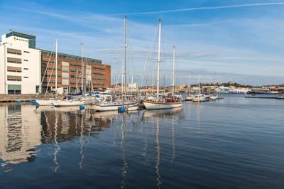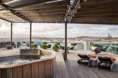 Hôtel à l'architecture audacieuse, posé sur le quartier maritime en plein boom de Lindholmen.