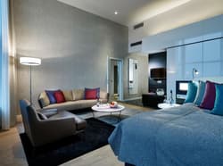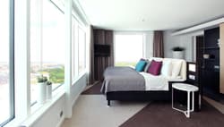 Absolument confortable ! Installée aux 22e et 23e étages, la vue est époustouflante. Cette belle suite a tout ce qu’il faut pour un séjour complètement agréable. Elle accommode un grand lit et le salon est meublé d’une table à manger et de canapés. Très fonctionnelle, elle dispose d’une kitchenette. Salle de bain chic.