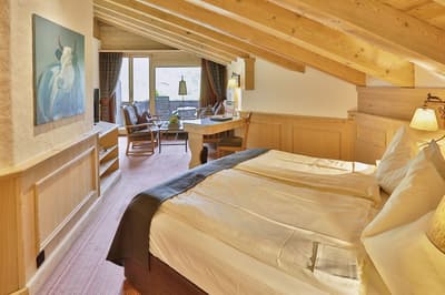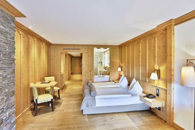 Bienvenue à l’Ermitage, un hôtel absolument iconique de la célèbre station de ski suisse ! Vous êtres tout de suite plongé dans l’atmosphère ultra-chaleureuse de ce chalet en bois : construit en 1955, il a gardé tout son charme tout en évoluant au fil des décennies. Résultat : l’histoire se lit sur ses murs, avec les frises colorées qui ornent la façade et les panneaux aux écritures médiévales gravées en allemand dans le hall. Les plafonds sont extraordinaires avec des peintures dans le style Renaissance. Et marcher sur ce parquet qui craque légèrement est un plaisir sensuel intense, décuplé par la vue qui s’ouvre devant vous derrière les grandes baies vitrées... La nature est ici et on la voit ! Asseyez-vous dans l’un des larges fauteuils gris et commandez un bon chocolat chaud ou une verre de vin. Puis laissez-vous envelopper par cette énergie particulière qui règne ici. So cosy ! Et ça continue dans les chambres cocooning et dans les salles de resto, toutes sublimes avec leur bois clair et leur caractère affirmé. Les petits déjeuners sont juste démentiels ! Une vraie pépite de bien-être au coeur des Alpes. Et à propos de bien-être, vous serez servis avec le spa et ses 3 piscines, dont une chauffée à l’extérieur et accessible même en hiver (pas parfaitement écolo mais vraiment très agréable). Un pur bonheur, cet hôtel... C'est l’étape est idéale pour les familles car l’établissement est clairement kidsfriendly. Mais c’est aussi génial en couple avec cette ambiance feutrée réconfortante.