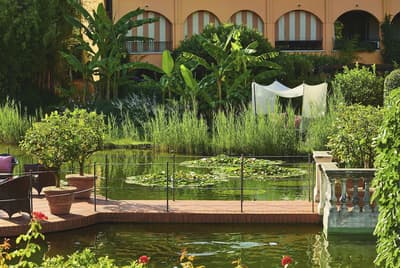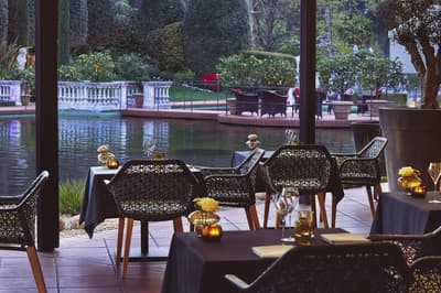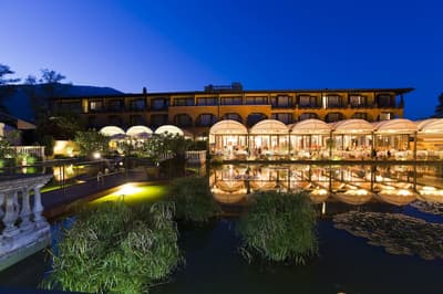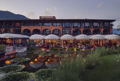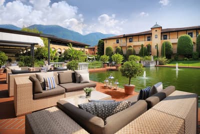 C’est une escapade hors du temps qui vous attend ici au Giardino Ascona ! Vous vivez la rencontre des dernières montagnes des Alpes et des citronniers italiens au bord du lac Majeur : un vrai paradis sur terre... Dès votre arrivée, vous serez totalement embarqués dans un univers de douceur et d’harmonie avec cet hôtel construit dans le style toscan, bordé de points d’eau à la végétation luxuriante. Dans le lobby, le côté italien est indéniable, à la fois baroque et élégant, avec ce sublime lustre qui trône au milieu. Marchez jusqu’à la terrasse avec vue sur un étang aux nénuphars apaisants, entouré d’un sublime jardin éclatant de verdure : vous êtes cernés par les agrumes ! La dolce vita à l’heure suisse ! Vous pouvez profiter à fond de l’extérieur grâce aux restaurants qui s'ouvrent sur cette nature et à la piscine entourée de cyprès. Vraiment, là, on se croirait en Toscane ! Et pour continuer la relaxation, passez par le spa avec sa merveilleuse piscine rococo, mais aussi et surtout son offre pléthorique de massages et soins ! La signature, ici, c’est l’ayurvéda. Cet art de vivre indien holistique va vous donner une sensation de bien-être ultra-puissante. Vous avez même une salle à dispo pour vos séances de yoga et de méditation. Le top ! Et côté resto, vous êtes gâtés : un 2 étoiles Michelin avec son mur de roses spectaculaire, et un spot paradisiaque au bord de l’eau pour déguster antiparti, plats vegan et autres pasta et risotto à tomber. Avec un petit olivier en centre de table et les mandariniers comme voisins. Une belle balade, inspirante et ressourçante à souhait. Très peaceful ! #ilovegiardino !
