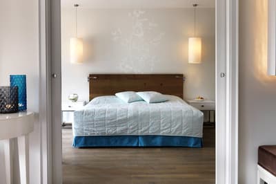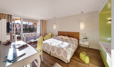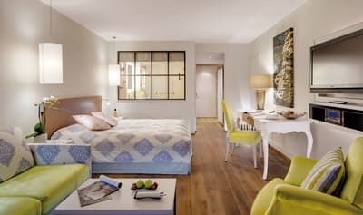 Dans un chic méditerranéen, elle bénéficie d'une décoration contemporaine et soignée avec un ameublement classique, des luminaires design, un petit coin bureau et se complète dans des tissus de haute qualité, des couleurs estivales et des sols en bois véritable foncé. La chambre est dotée de deux lits simples (lit king size, twin ou simple disponible sur demande) et la salle de bains est équipée d’une douche et d’une baignoire (sauf chambre Casa Rosa). Le tout dans une ambiance relaxante !