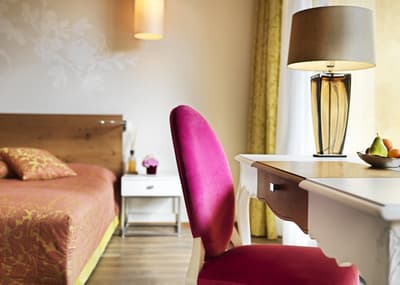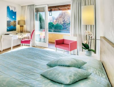 Accueillante, elle bénéficie d’une vue imprenable sur les montagnes tessinoises ou sur le jardin et dispose d’un grand balcon pour vous détendre, tout en sirotant votre boisson préférée, après vos activités shopping ou excursion. Durant vos vacances, vous bénéficierez de tout le confort que cette chambre a à offrir.