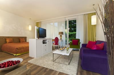 Spacieuse, elle profite d’un balcon d'où vous pourrez contempler la vue imprenable sur la montagne ou le jardin et dispose d’un bel aménagement pour des vacances réussies. Dès le réveil, respirez l’air frais dans le jardin luxuriant, tout en sirotant votre boisson préférée. Durant votre séjour, vous bénéficierez de tout le confort que cette chambre a à offrir.