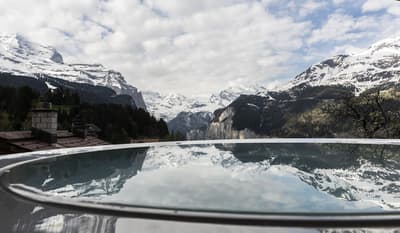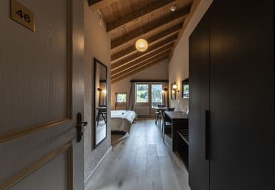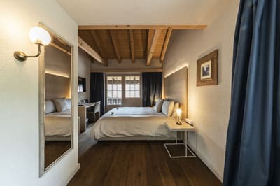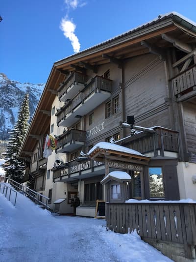 Si vous voulez être au pied des pistes et privilégier les mobilités douces, vous êtes au bon endroit avec le Maya Caprice Boutique Hotel & Spa ! Ici, vous êtes dans un village qui n’accepte pas les voitures : à vous les vélos, les escapades en ski, en raquettes ou tout simplement en train grâce à la station juste à côté ! C’est le cadre rêvé pour un séjour dans les Alpes avec ce merveilleux chalet en bois typique des montagnes suisses ! A l’intérieur, c’est une déco soignée, épurée, aux teintes douces et naturelles qui vous attend. Vous allez adooorer le lounge avec la cheminée et vous ne pourrez plus décoller des canapés douillets... On est si bien ici, avec un bon chocolat chaud fumant ou une bière locale. Les chambres ? Elles sont sobres et minimalistes, et affichent un bois brut totalement raccord avec le style de l’hôtel. Et avant d’aller manger au resto italien avec ses plats toscans et ses pizzas, prenez le temps de faire un plouf dans le jacuzzi extérieur pour profiter à fond de cette vue incroyable ! On respire, ici ! Chill, sport ou Namasté avec les cours de yoga, vous allez forcément trouver le bon moyen de profiter à fond de cet hôtel charmant, sans prise de tête. Idéal pour les couples et les virées entre amis.