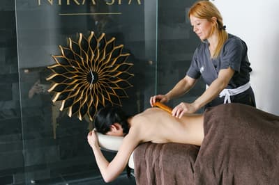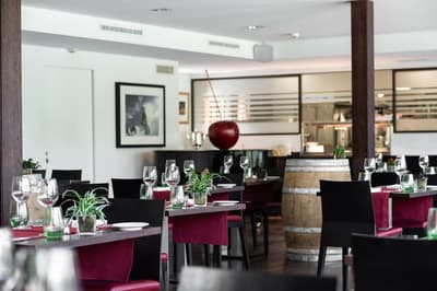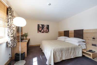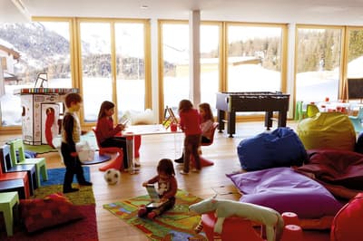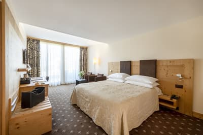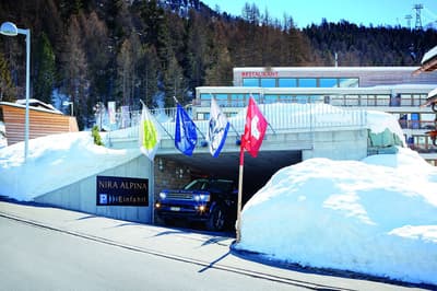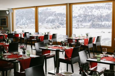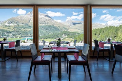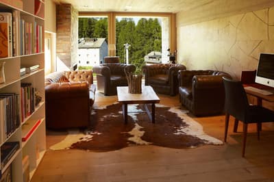 Escale élégante et ressourçante garantie au Nira Alpina ! En plein cœur de la station de Saint-Moritz, ce grand vaisseau horizontal tout en épicéa vous tend les bras : la promesse d'un séjour cocooning à souhait, dans l’esprit montagne, comme on aime ! Dans le lobby, vous marchez sur un carrelage gris anthracite, qui tranche avec la clarté du bois de sapin qui court partout. Arrêtez-vous au niveau de la sculpture de cheval noir pour le check-in, tout en apprivoisant cette vue incroyable sur les pics... Plus tard, vous irez faire un tour au salon, totalement ouvert sur l'univers montagnard grâce à des grandes baies vitrées : vous ne voudrez plus décoller des énooormes fauteuils en cuir bordant les tables basse en bois, ni des poufs en peau de vache tachetée au coin de la cheminée. L’atmosphère est détendue et franchement zen ! Faim ? Vous allez pouvoir expérimenter de sublimes moments culinaires ici : le restaurant Stars vous propose une sublime world food et la Pizzeria Stalla Veglia vous accueille dans une salle très cosy — au charme alpin parfait avec ses tables et chaises en bois tradi et sa déco rustique ! Dommage qu’elle ne soit ouverte que pendant la saison hivernale... A noter également : il y a même une boulangerie-pâtisserie propre à l’établissement. Vous êtes gourmands, mais aussi du genre à chiller au spa entre deux randos ? Le Shanti spa va vous plaire, avec son approche holistique et sa super piscine avec vue sur le paysage. Et après un massage aux pierres chaudes, montez sur le toit : un bar à cocktails vous attend ! Avec un accent mis sur le spritz. Bref, Nira Alpina, c’est la destination de rêve pour communier avec la montagne dans un confort absolu.