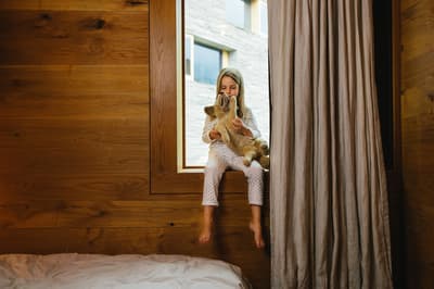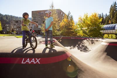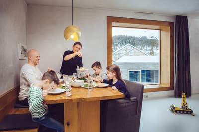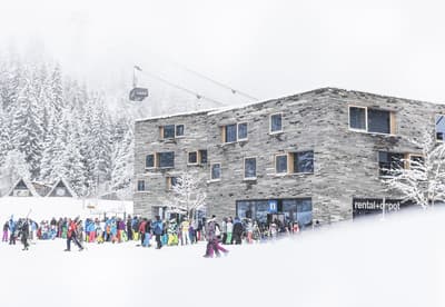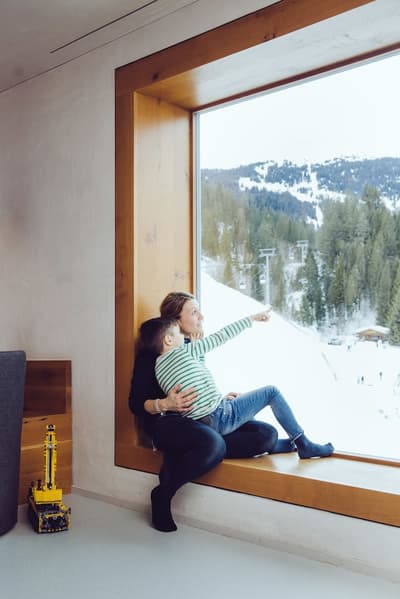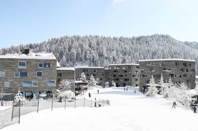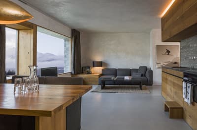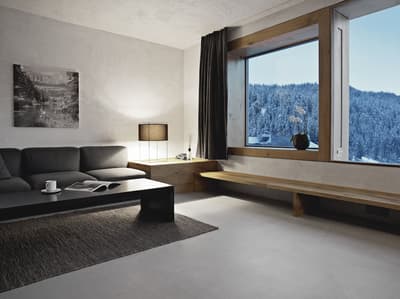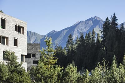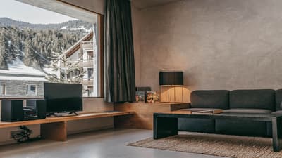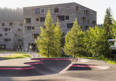 Vous aurez l’impression d’être totalement intégré dans la montagne en séjournant au Rocksresort. La façade entièrement recouverte de pierres est aussi discrète que spectaculaire ! Comme d'énormes masterpieces de sculpteurs posés au creux des montagnes dans cette vallée de Laax. Et lorsque la neige recouvre les sapins aux alentours, l’hôtel est en total camouflage ! Impressionnant ! A l’intérieur, on retrouve ces touches minérales aux 50 nuances de gris, réchauffées par le bois brut et le chêne massif. Une vraie ambiance montagnarde, type chalet minimaliste, bien réconfortante au pied des pistes de ski ! Et la vue à travers les larges baies vitrées sur la nature environnante est franchement juste époustouflante. Ici, on apprécie aussi la simplicité et l’espace. Mais aussi tous les restos à dispo ! A vous les délicieux burgers, pizzas, pad Thai et autres fondues moitié-moitié ! Vous voyagez avec des enfants ? Vous ne pouvez pas mieux tomber : non seulement l’hôtel propose un kids club canon avec une tonne d’activités, mais vous avez en plus un parc spectaculaire dédié aux sports de glisse ! A vous les vagues de surf et les rampes de skate ! Ce resort est un véritable paradis pour les familles, au cœur des montagnes suisses.