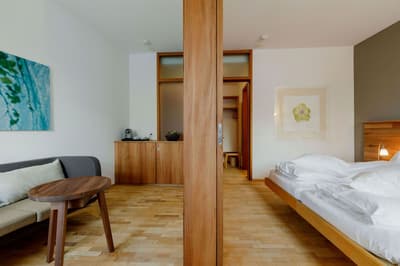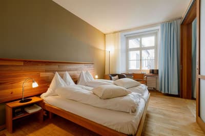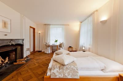 Si vous voulez ouvrir une page de conte de fées en Suisse, vous êtes au bon endroit à l’hôtel Schloss Wartegg, au bord du somptueux lac de Constance ! Et en plus, c’est un hôtel écoresponsable où vous respirez vraiment l’air pur avec une sérénité totale. Mais avant d’enfourcher votre vélo pour pédaler au bord de l’eau, prenez le temps de découvrir ce château historique qui se dresse ici depuis 1557 ! Ancien refuge de familles nobles, dont une impératrice d’Autriche, la demeure est restée intacte malgré plusieurs décennies d’abandon au cours du 20e siècle. Grâce à la famille actuelle, il a retrouvé toute sa splendeur ! Même le bain romain turquoise de 1928 est toujours là : à vous les instants d’abandon dans l’abondance des bonnes choses avec une petite séance de sauna au passage ! C’est aussi son parc incroyable de 130 000 m2, peuplé d’essences magiques, qui fait tout le charme du lieu. Avec les moutons qui sont là pour entretenir le paysage de manière totalement naturelle. Car on ne prend pas l’écologie à la légère ici, c’est une vraie philosophie quotidienne. Avec une énergie 100 % verte, de bons produits locaux et des matériaux naturels, vous goûtez au luxe version écofriendly ! Baladez-vous dans le jardin anglais, goûtez à la cuisine pleine de fraîcheur et profitez d’un délicieux petit déjeuner 100 % bio. C’est un peu le paradis ici, à deux pas de Saint-Gall et des monts d’Appenzell... Idéal en famille : vous avez une playroom très pratique pour les kids à dispo. Et pour les escapades en amoureux aussi : cet endroit promet une vraie coupure et une reconnexion à la nature.