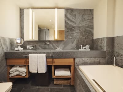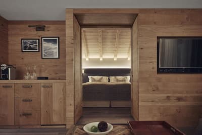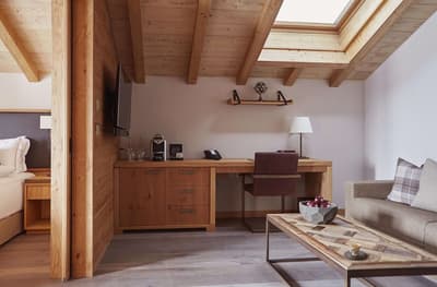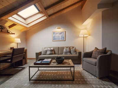 Le top ! Le balcon en rooftop est idéal pour une vue merveilleuse sur les montagnes enneigées. Très spacieuse, la suite est très confortable et agréable. Elle accommode un grand lit et le salon est meublé de fauteuils et de canapés-lits. Table à manger et kitchenette pour être tout à fait fonctionnelle. Salles de bains avec douche à effet de plus ou baignoire.