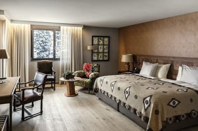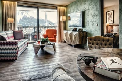 C’est un séjour écoresponsable et ultra-cosy qui vous attend au Valsana Hotel & Appartements ! Avec une vue à couper le souffle sur le lac et les sommets, puisque vous êtes à plus de 1800 mètres ici, à Arosa, au coeur des Grisons. Dès votre arrivée, vous allez être subjugués par la silhouette discrète et élégante de l’hôtel, parée de balcons ajourés. A l’intérieur, l’esthétique alpine est totalement au rendez-vous : le bois brut et la pierre from Switzerland sont partout ! Un charme fou ! Avec ces jolies peintures murales botaniques très dans le style edelweiss des Alpes. On retrouve aussi quelques finitions dans le style industriel avec du cuivre et du fer forgé, et des touches design comme ces chaises œuf aviateur. Fauteuils en cuir capitonné, bibliothèques en bois sombre, cheminée à la française... Ici, on se sent tout de suite à l’aise avec une seule envie : chiller et profiter ! Et avec son bilan carbone neutre, l'hôtel est un sacré bon plan écolo. Fun fact : il est chauffé grâce à un accumulateur de glace ! En parlant d’eau, dirigez-vous donc vers le spa, où une piscine agréable vous attend, avec une vue imprenable sur les montagnes. Même la salle de sport donne sur les sapins ! Et si vous êtes yogi, une autre salle est à votre dispo pour ça, ouverte sur la nature elle aussi. Une petite faim après tout ça ? Dégustez un bon superbfoodowl avec quinoa, graines de chanvre et kale si vous voulez manger healthy, ou préférez une délicieuse fondue suisse sur votre balcon en mode private dinner. Au top ! Cet hôtel est une vraie pépite suisse dans son écrin naturel préservé à fond. Avec les remontées mécaniques accessibles à pied, en plus, pour les fondus de glisse. On adore.