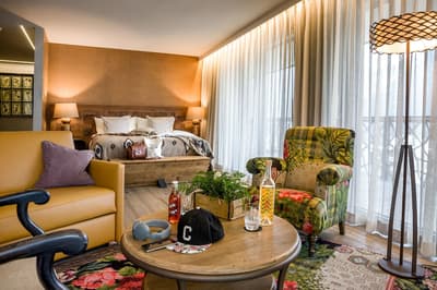 Dans un intérieur éclectique d'inspiration alpine, elle est dotée de papier peint design, d'un mobilier industriel chic, de fauteuils brodés, de parquet en chêne et est conçue dans un souci de confort et de conscience. La chambre est dotée d’un lit king size ou twin size (200x200 cm) avec matelas naturel "Elky" et la salle de bains est équipée d’une douche à effet pluie ou d’une baignoire, de carreaux marocains colorés, de grandes serviettes et d’articles de toilette écologiques. Détendez-vous dans le petit coin salon, tout en écoutant de la musique sur les vieux disques vinyles. Ambiance conviviale !