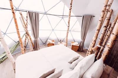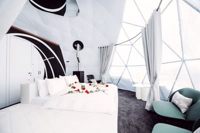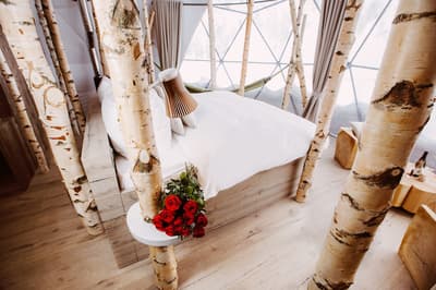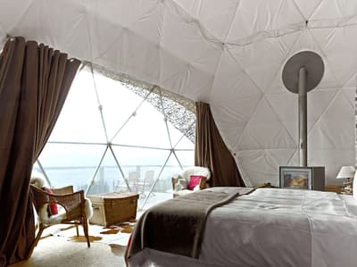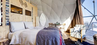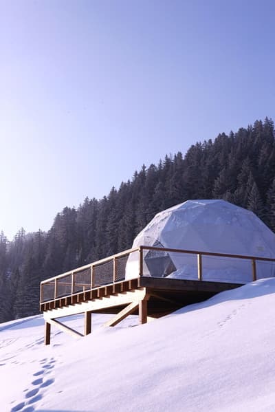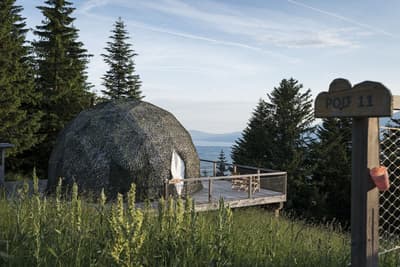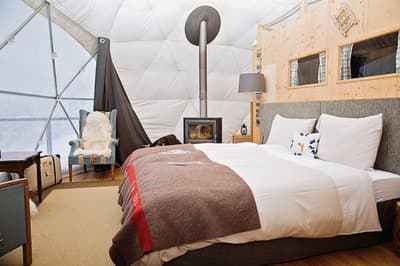 Apprêtez-vous à vivre une expérience glamping hors du temps et hors du commun au Whitepod Original Hotel ! Une évasion sensationnelle perchée à 1400 mètres dans les Alpes suisses. L’endroit est féérique et insolite avec ses Pods posés sur la montagne, comme d’énormes boules de neige éternelle en fusion totale avec la nature. Ici, c’est le slow life prôné et assuré ! Il vous faudra marcher 15 minutes depuis l’accueil pour atteindre votre chambre : l’expérience est totale... L’hôtel a construit toute sa philosophie et ses bâtiments autour de la protection de l’environnement. Ici, vous choisissez donc de vous faire du bien ET de faire du bien à la planète ! Et dans ces bulles équipées de poêles chaleureux, la magie opère : vous êtes en suspension, comme propulsés dans une autre dimension, où on prend le temps de profiter du spectacle de la nature. Le resto est ultra-cosy et vous garantit de belles soirées à la lumière douce de la cheminée. Les ptits déj' sont de vrais moments de partage, que ce soit dans le Pod dédié ou dans le vôtre, avec uniquement du local et du fait-maison ! Bref, vous avez choisir l’endroit rêvé pour revenir à l’essentiel et se reconnecter. A soi et à la nature. La wildlife version luxe !