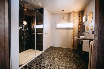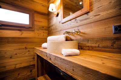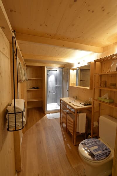 Très cosy, elle est idéale pour se couper du quotidien. Cette cabine est faite pour une famille ou pour des amies. Grande terrasse aménagée pour profiter de la vue sur les montagnes. Spacieuse et purement confortable, elle dispose de 3 chambres accommodées de lits king ou de lits jumeaux. Salle de bain avec pommeaux de douche écologique.