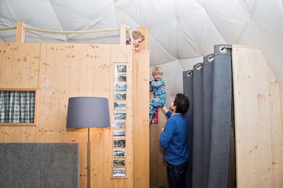 Cette cabine est faite pour une famille ou pour des amies. D’une dimension généreuse, la terrasse profite d’une vue panoramique et s’ouvre sur un jardin. Très cosy, elle est idéale pour se couper du quotidien. Spacieuse et purement confortable, elle dispose de 3 chambres accommodées de lits king ou de lits jumeaux. Salle de bain avec pommeaux de douche écologique.