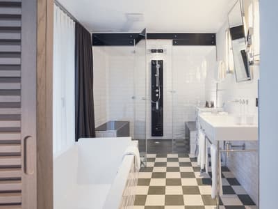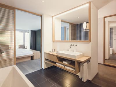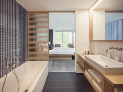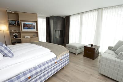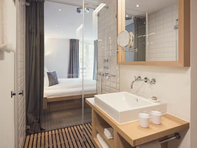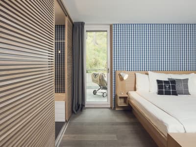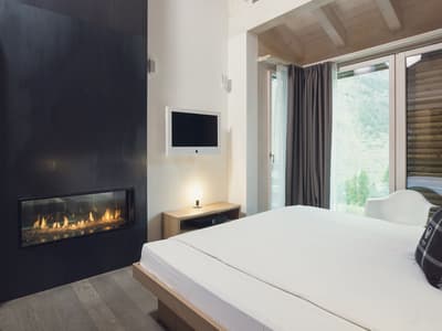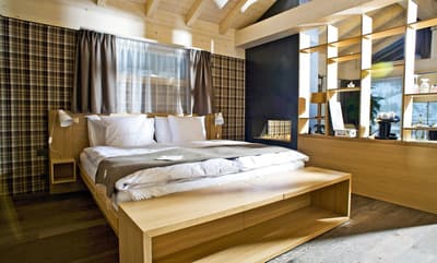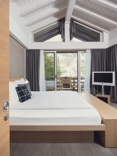 Vous aurez l’impression d’être en apesanteur face au somptueux glacier du Cervin en séjournant au Cervo Mountain Boutique Resort ! Les avis sont dithyrambiques sur cet hôtel écoresponsable incroyable niché dans les Alpes suisses. Vous êtes dans un véritable petit village de chalets en bois, typiques du pays, dans le style pavillons de chasse qui se fondent totalement dans le paysage, dissimulés entre les sapins. Et vous êtes loin d’avoir tout vu… Non seulement votre chambre est hyper jolie et agréable avec cette vue immersive et ces tons naturels, mais vous avez un espace bien-être juste hallucinant qui vous attend. Un lieu totalement atypique qui s’inspire des rituels asiatiques et nordiques : à vous le plongeon dans l’onsen japonais et les bains bouthanais après un bon sauna ! Vous pourrez déguster du thé dans une yourte, profiter d’un massage détox aux herbes magiques et faire quelques asanas ou méditer dans une des salles relaxantes en bois naturel. Une expérience juste génialissime ! Après votre journée de ski ou après avoir grimpé sur le mur d’escalade, installez-vous sur une terrasse pour une coupe de champagne au son d’un DJ set. On se régale ensuite dans un des restos : végétarien, aux influences orientales, burgers, spécialités locales au fromage ou pasta, on a l’embarras du choix ! Et pour terminer, poussez la porte du speakeasy pour boire un cocktail. Bref, expérience ultra-immersive garantie ici ! Et en plus, la philosophie de l’hôtel est clairement écologique. On adore.