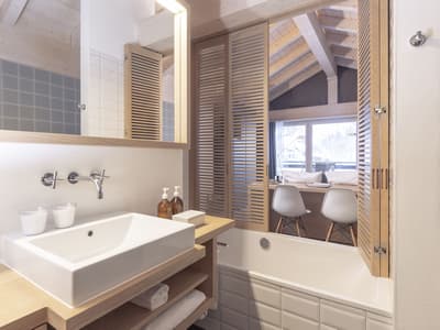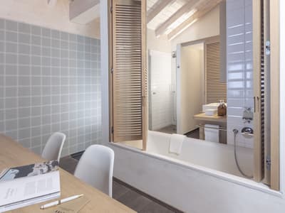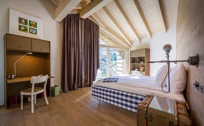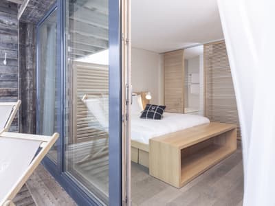 Faite pour un groupe d’amis ou pour une famille, elle est intelligemment conçue. Le petit balcon est complètement aménagé pour apprécier la vue reposante. Elle accommode un grand lit et dispose de lits simples superposés. Salle de bain avec douche à effet de pluie.