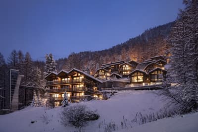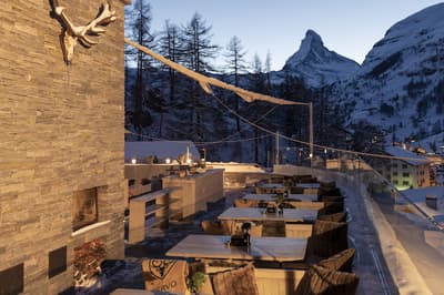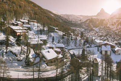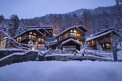 Un hôtel écofriendly pensé comme un petit village de montagne face à Cervin avec onsen japonais, yoga, speakeasy et restos à tomber.