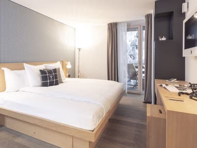 Agréable et confortable, elle est superbe. Le petit balcon est complètement aménagé pour apprécier la vue reposante. Cette belle chambre accommode un grand lit king ou des lits jumeaux. Salle de bain avec douche à effet de pluie.
