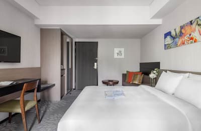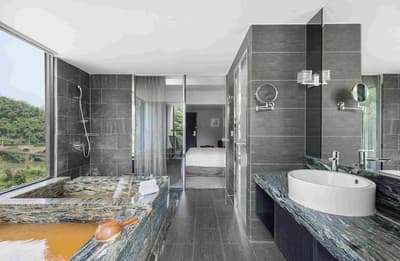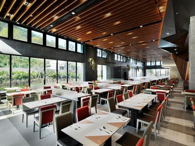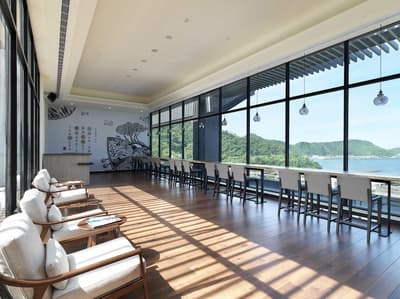 Perché au point le plus élevé de Suao, avec une vue panoramique s'étendant jusqu'aux ports de pêche voisins, le Lakeshore Hotel Suao s'est offert un site d'exception. Un vrai nid d'aigle ! D'ailleurs, la piscine à débordement se trouve au 8e étage, pour elle aussi jouir de toutes ces perspectives. L'architecture optimise la transparence. La lumière baigne généreusement chaque espace, engendrant un sentiment de sérénité infini. Les salons de lecture participent à cette ambiance. Vous ralentir, vous ressourcer comptent parmi les objectifs essentiels de votre hôtel, y compris de participer à votre bien-être via l'onsen installé dans la salle de bain de votre chambre. L'onsen est un bain thermal japonais qui se présente ici sous la forme de deux baignoires où prendre un bain d'eau chaude issue d'une source volcanique puis d'eau froide. Ne soyez pas surpris car la source en question est ferrigineuse et dégage une certaine odeur ! Tenez bon car les bienfaits sur la circulation, les muscles et le stress en général sont formidables ! L'esthétique minimaliste de l'hôtel vous aidera à faire le vide. Quant à la cuisine locale, elle vous apportera les bénéfices d'une alimentation saine et verteuse en toute cohérence avec l'objectif zéro carbone de l'hôtel. D'ailleurs, tout en vous invitant à explorer la gastronomie locale, il vous convie à emprunter les transports en commun pour explorer les environs.