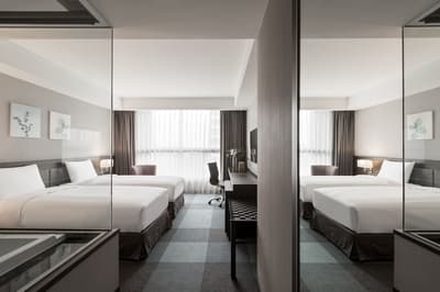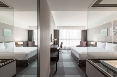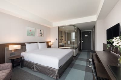 Amateur de grands hôtels modernes au design classe et épuré ? Alors rendez-vous dans le centre ville de Tainan, sur la côte Ouest de l’île de Taiwan. Passez la porte du rez-de-chaussée et vous découvrirez un hall tout de gris vêtu et encadré de hauts murs marbrés, où trônent d’étonnantes œuvres d’art contemporaines. Pas de panique, l’énorme sculpture suspendue au plafond, qui ressemble à un entrelacs de plumes dorées, ne risque pas de vous tomber sur le museau. Ensuite, direction la réception, où vous serez reçu par une équipe qui a le sens de la courtoisie et vous guidera aimablement vers votre chambre. Vous aimez les espaces sobres et élégants ? Dans ce cas, vous devriez apprécier le design des chambres et suites, où le gris clair et le minimalisme dominent. Au passage, jetez un coup d’œil à la baie vitrée qui ouvre sur le paysage urbain. Avis aux voyageurs soucieux de la propreté : la direction de l’hôtel y est particulièrement attachée. Vous le constaterez sûrement en allant prendre place dans l’un des deux restaurants où cuisine occidentale et asiatique se mêlent – mention spéciale pour le petit déjeuner et son grand choix de mets. Notez qu'il y a pas mal de produits locaux au menu ! Le circuit court, c’est toujours mieux pour l’environnement, et ce n’est d'ailleurs pas la seule mesure prise par Lakeshore Hotel Tainan en matière d’éco-responsabilité. Ce dernier s’assure en effet d’éliminer au maximum les emballages plastique à usage unique et de diminuer sa consommation d’énergie.