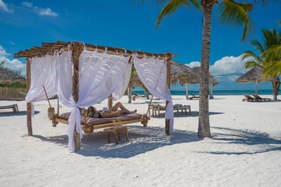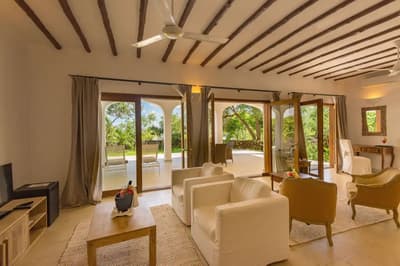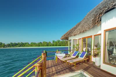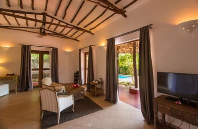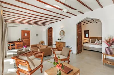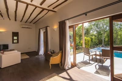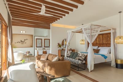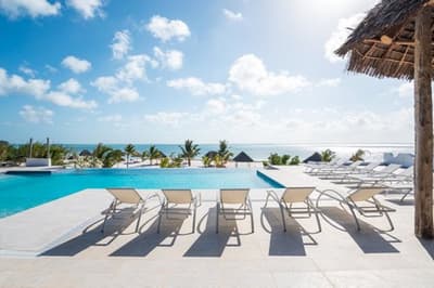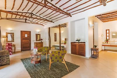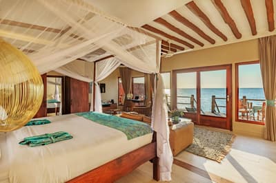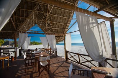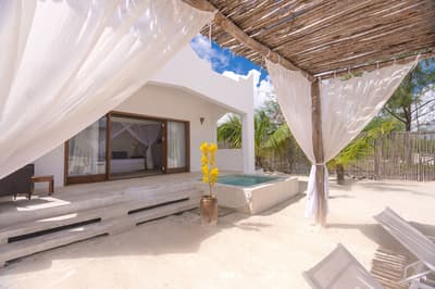Vous qui rêvez de plage et de cocotiers dans un cadre naturel à Zanzibar, le Konokono Beach Resort vous attend. Vous êtes entourés de verdure et d’essences locales, et face à vous se déploie la baie magique de Chwaka. Et étant donné que vous êtes au bout de la péninsule, à vous les couchers de soleil de fou ! Au Konokono Beach Resort, on prend soin de la nature, et pour cause, toute une faune habite ici ! A commencer par les petits singes typiques de l’île qui vous rendent parfois visite sur votre transat. Car oui, ici, on n’a pas fait les choses à moitié, vous avez votre propre villa ou bungalow. Au choix, avec vue sur le jardin ou sur la mer. Voire carrément sur la plage ! Et avec petite piscine privée pour chacune des chambres proposées. Bref, c’est le luxe. A noter que pour s’accorder avec ce cadre de rêve, tout a été construit de manière harmonieuse dans les règles de l’art de l’île. Toit de chaume, bois naturel et murs blancs immaculés, c’est une ambiance apaisante qui règne. Du coup, pour se mettre totalement en mode zen, un spa est à votre dispo avec massages et soins divers et variés. Sur place, vous pouvez aussi louer des paddles et des kayaks pour naviguer dans la baie en toute quiétude. Au niveau du restaurant légèrement surélevé, vous profitez d’une vue à couper le souffle, face à l’océan et la piscine. A table, vous profiter d’une cuisine faite à base de produits frais, souvent issus de l’île. A vous les bons poissons pêchés du matin et les fruits frais exotiques à tomber par terre ! En couple ou en famille, c’est un hôtel qui permet vraiment de se ressourcer, loin de l’agitation. A noter quand même qu’il y a un bar de plage à proximité et un centre nautique à deux pas, vous n’êtes donc pas coupés du monde…