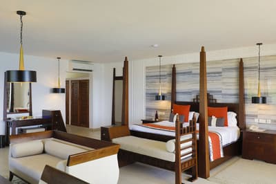 Cette luxueuse chambre profite d’une vue exceptionnelle sur les jardins, les piscines et l’océan et peut disposer d’un balcon avec mobilier d’où vous pourrez savourer un verre de vin tout en admirant le panorama. À noter qu’elle peut être située au deuxième et troisième étage.