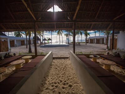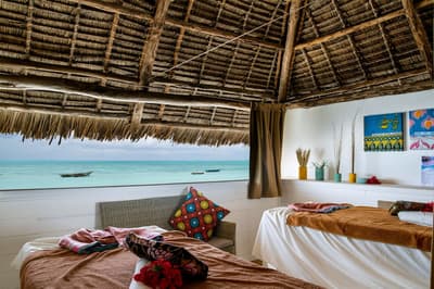 Les vacances pieds nus dans le sable dans un petit coin de paradis de Zanzibar, c’est à l’hôtel The Loop que ça se passe ! Vous entrez dans un des lieux les plus authentiques et chill de l’île ! Avec un atout et pas des moindres : c’est un petit hôtel qui compte seulement 14 chambres, avec une conscience écologique aussi efficace que source de plaisir visuel. Tout n’est qu’harmonie ici, avec cette architecture traditionnelle et des murs blanchis à la chaux qui contrastent avec les toits de chaume. Vous allez adorer quitter vos chaussures pour ne plus jamais les remettre : vous êtes SUR la plage et le sable blanc tout doux fait partie de la déco ! Autres éléments à noter : le bois et les matériaux recyclés qu’on trouve un peu partout. Si vous êtes fan d’upcycling, vous allez être servis. A vous le resto avec ses banquettes en palette rehaussées de tissus africains canons où vous pouvez vous régaler de fruits et de poissons frais ! D’ailleurs, on valorise aussi l’art et l’artisanat tanzanien ici. Jusque dans les chambres… Des chambres minimalistes teintées de matériaux naturels sublimissimes, qui offrent toutes une terrasse avec vue inspirante, que ce soit sur le jardin et ses bananiers ou sur la mer avec ses cocotiers. Sur place, vous trouvez une piscine qui ouvre sur l’océan mais aussi un centre nautique au top avec kayak, voile, plongée, snorkeling, tout ce qu’il faut pour profiter de l’eau cristalline. Une escale romantique parfaite pour les sportifs !