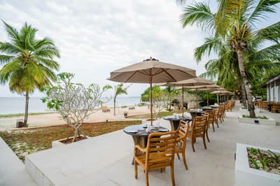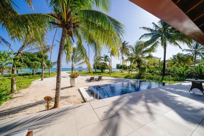 Située le long du rivage bordé de palmiers, elle offre une vue imprenable sur l'océan depuis chaque pièce et dispose d'une terrasse et d'une piscine d'où vous pourrez nager et contempler le panorama en toute intimité. À noter que vous pourrez vous doucher à l'intérieur ou dans le jardin privé de la douche extérieure.