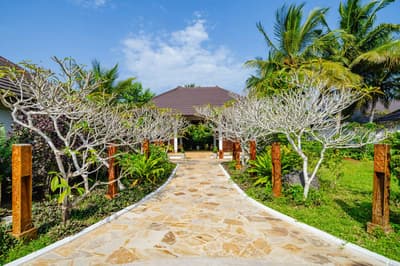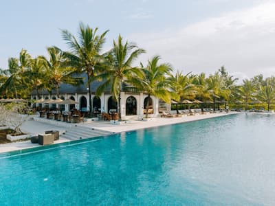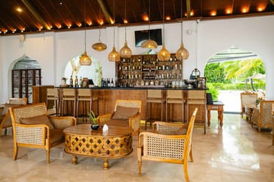 Mais quelle folie, cet hôtel ! On a juste l'impression de flotter sur cette piscine spectaculaire à débordement face à la mer qui ne ressemble à aucune autre. Le concept est simple : 66 villas pour 32 hectares de jardin, une piscine de 40 mètres de long, et tout le decorum qui va avec. Dauphins, oiseaux, fleurs, fruits, singes... la vraie question, c'est : Qu'est-ce qu'on ne trouve pas au Residence Zanzibar ?. La journée, on vit sa vie de star, et en soirée, sa vie de VIP. Ou l'inverse, on ne sait plus trop. On bronze, on chille, on se fait masser et bichonner. Ah, et on y mange hyper bien, au resto ou en chambre si on a envie de profiter de sa moitié, de la cuisine et de la vue en même temps. On a surkiffé le bar bibliothèque qui donne un charme colonial à l'établissement. Les villas sont toutes équipées d'une piscine privée pour un séjour ultra VIP, c'est le programme. Après si vous avez envie de bouger, le centre d'observatoire des dauphins est juste à côté. Tous les jours, c'est yoga class pour ceux qui veulent s'y essayer ou pour les confirmés, le prof est top! Contrairement à d'autres endroits, ils savent faire les cocktails et manier les alcools les plus fins... Le seul truc qu'on peut vous promettre, c'est qu'il n'en faudra pas beaucoup pour que vous demandiez au proprio de vous adopter ! Le personnel de l'hôtel est accueillant et là pour répondre à tous vos caprices de star. Et sans culpabilité, svp : ici, on vous chouchoute, mais on sait aussi rester sobre, grâce à toute une panoplie d'écogestes.