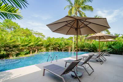 Idéale pour une escapade en famille ou entre amis, cette villa luxueuse est située dans des jardins luxuriants et dispose d’une piscine privée et d’une terrasse avec mobilier d’où vous pourrez profiter du soleil et de la tranquillité tropicale.