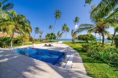 Située dans un jardin luxuriant avec des cocotiers imposants, elle profite d’une piscine privée et d'une terrasse avec mobilier et comprend un lit de jour et des chaises longues avec parasols, d’où vous pourrez vous détendre sous la chaleur du soleil africain, savourer un dîner romantique à deux ou siroter des cocktails au coucher du soleil.